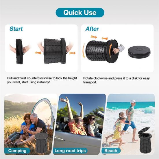 Цей зручний портативний туалет Police має ширше сидіння для більшого комфорту. Функціональна конструкція клапана дозволяє вільно перемикатися між різними режимами використання, які можна використовувати як портативний туалет, складаний стілець, ящик для зберігання, бічний столик або сміттєвий бак.