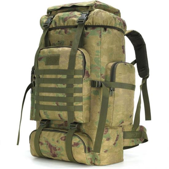 Цей рюкзак виготовлений з міцної тканини Oxford 900D, яка витримує великі навантаження. З об'ємом 70 літрів, він має достатньо місця для всього вашого спорядження та необхідних речей.