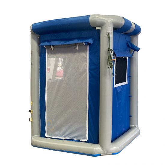 Цей синій надувний намет з ПВХ для купання та дезінфекції - YRF, виготовлений китайським виробником, розроблений для задоволення потреб екстреного та щоденного купання та дезінфекції. Виготовлений з високоякісних ПВХ-матеріалів, він має чудові водонепроникні та міцні властивості. Намет має розумний простір, що забезпечує комфортне середовище для купання та дезінфекції, а також його зручно встановлювати. Це ідеальний вибір для забезпечення особистої гігієни та чистоти навколишнього середовища в різних ситуаціях.
