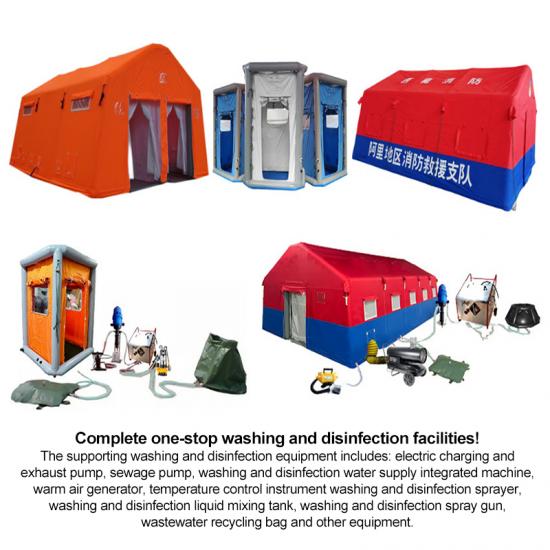 Завдяки надувній конструкції намет простий в експлуатації та зрозумілий. Обладнаний пристрій для надування дозволяє швидко надути його, і одна людина може встановити його протягом 10 хвилин, що забезпечує легке встановлення намету для купання та дезінфекції YRF та задовольняє потреби швидкого розгортання в надзвичайних ситуаціях.
