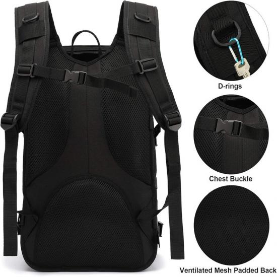 Вентильована сітчаста м'яка задня частина та плечові ремені розроблені для забезпечення комфорту навіть під час тривалого носіння. Повітропроникність та зручність плечових ременів чорного високоякісного рюкзака для екстрених ситуацій дозволяють легко носити його в різних умовах без навантаження.