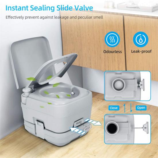Цей міцний туалет для ліквідації наслідків цивільних стихійних лих має штифти на дні для легкого розбирання та скидання стічних вод. Тим часом нижня частина оснащена фіксуючим пристроєм для забезпечення стабільності під час використання. Туалет також оснащений розсувним клапаном, який ефективно запобігає протіканню та запаху, забезпечуючи вам більше спокою під час його використання.