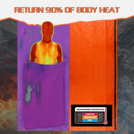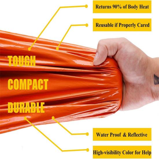 Виготовлений з надлегкого поліетиленового матеріалу для цілодобового тепла та має колір, який полегшує пошук рятувальників, це незамінний інструмент для виживання.