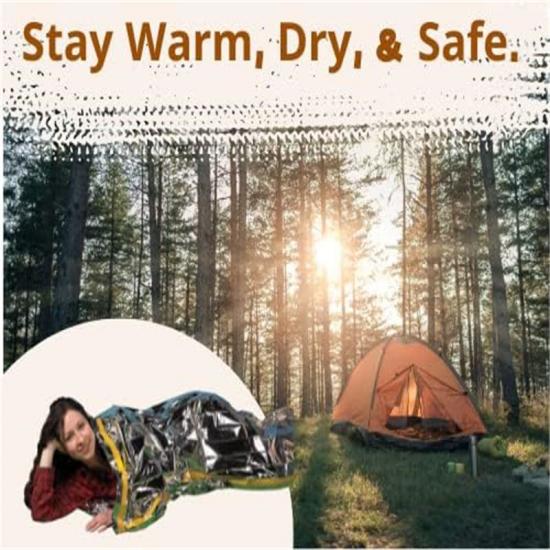 Виготовлений з високоякісної алюмінізованої поліефірної плівки, цей утеплений спальний мішок допомагає зберегти до 90% тепла вашого тіла в надзвичайних ситуаціях.