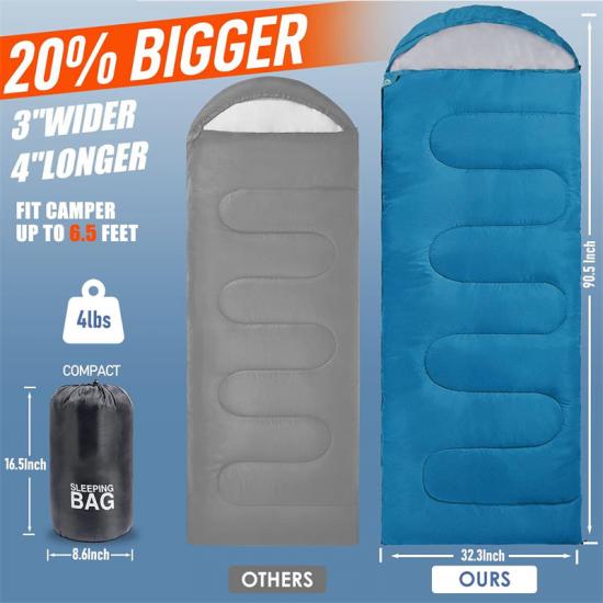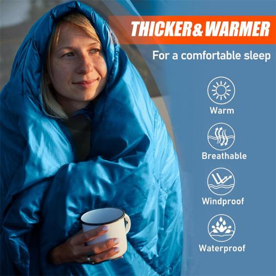 Зовнішня тканина спального мішка з водонепроникного поліестеру 210T захищає від вітру та дощу, зберігаючи тепло навіть у холодну погоду.