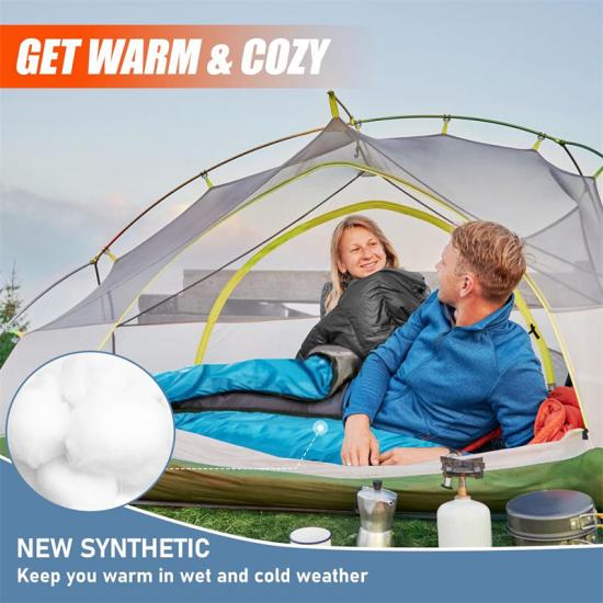 Нова синтетична ізоляційна підкладка всередині спального мішка добре працює та утримує ізоляцію на місці навіть у вологих умовах, запобігаючи відчуттю вогкості.