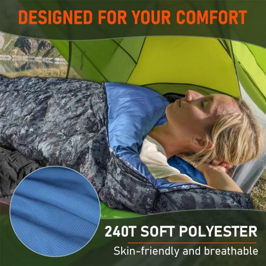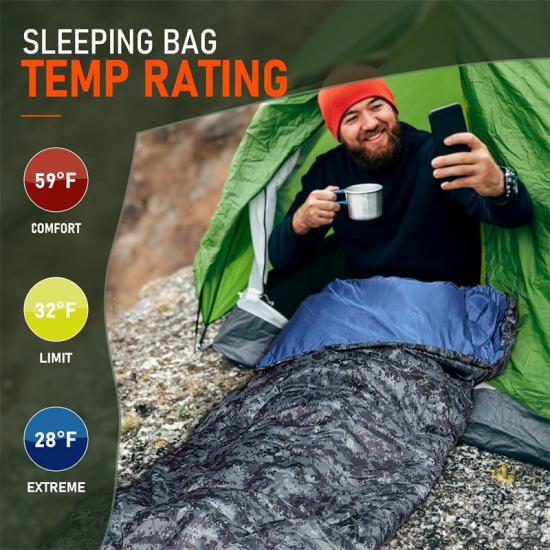 ВІДЧУЙТЕ РІЗНИЦЮ - Надзвичайно зручний легкий спальний мішок для кемпінгу та виживання на свіжому повітрі YRF розроблений для того, щоб після виснажливого дня трекінгу, походу, подорожі чи будь-якого іншого дослідження ви могли добре та спокійно виспатися. Конструкція з контролем перекидання дозволяє швидко та легко скласти мішок, а два мішки можна з'єднати вдвоє, щоб збільшити простір.