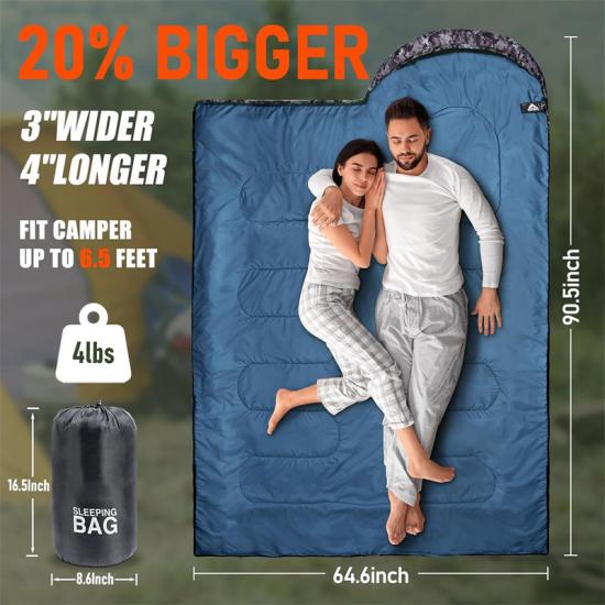 Самонадувальний килимок можна використовувати як килимок для спального мішка або ліжко, а конструкція з застібками дозволяє прикріплювати обидві сторони пінопластового килимка. Ця конструкція дозволяє розділити наш спальний мішок Discount Warm розміру queen-size на дві ковдри розміру queen-size для використання, забезпечуючи більшу гнучкість.