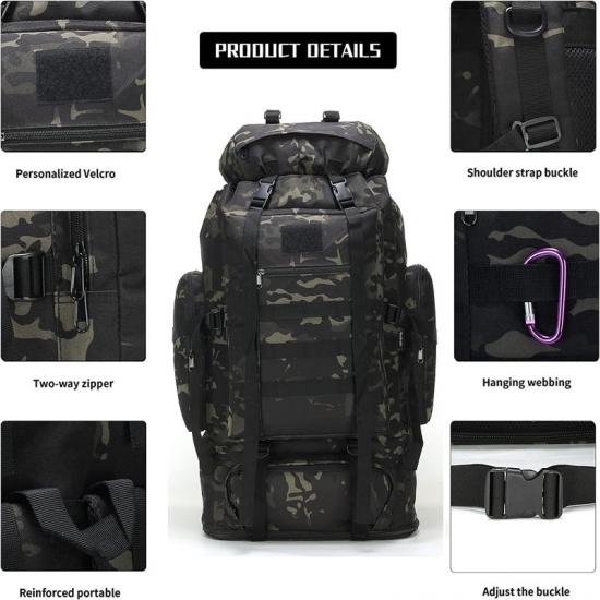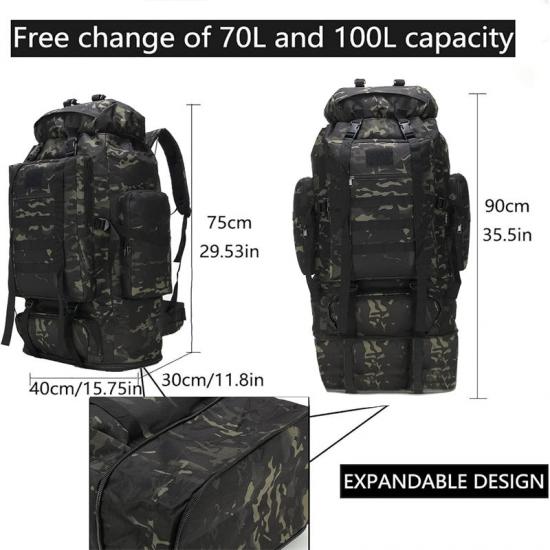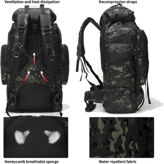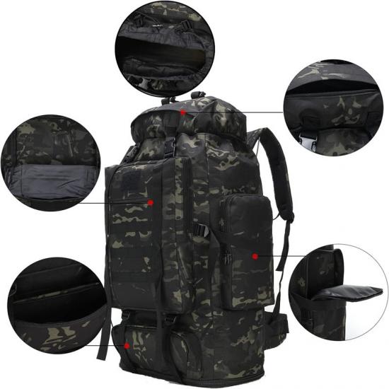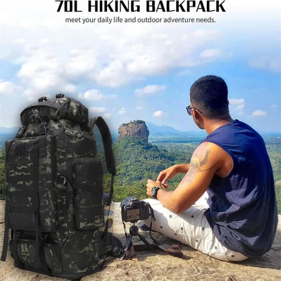 Цей рюкзак виготовлений з міцної тканини Oxford 900D, яка витримує великі навантаження. З об'ємом 70 літрів, він має достатньо місця для всього вашого спорядження та необхідних речей.