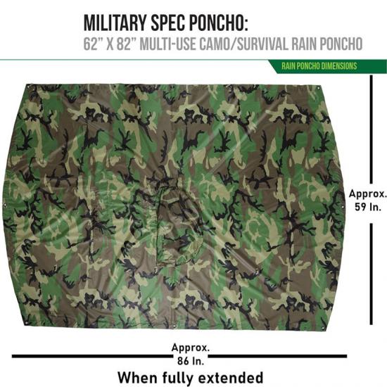 В: Так, пончо має шнурок на талії та 8 міцних металевих люверсів, що дозволяє легко використовувати його як намет для виживання, резервуар для води, носилки для екстреного перенесення, чохол для гамака, роздільник для намету, екран для забезпечення конфіденційності та приховане укриття.