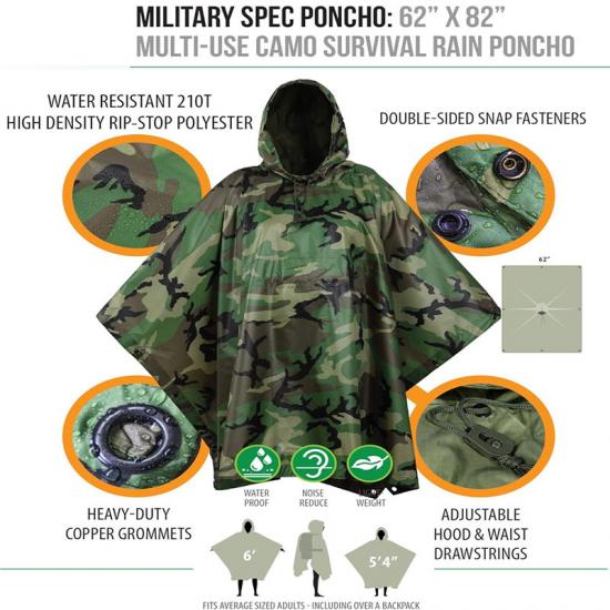 Аварійний підкладковий пончо ідеально підходить для військових під час польових навчань та бойових дій.