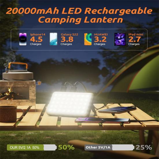 Аварійний світильник оснащений мобільним блоком живлення потужністю 10 Вт та ємністю 20000 мАг, який можна заряджати через USB-кабель. Він має час роботи від акумулятора до 144 годин при нормальній яскравості, а завдяки поворотному на 90 градусів металевому кронштейну ви можете вибрати найбільш підходящий кут освітлення.