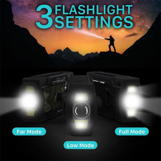 Багатофункціональний радіопристрій для екстрених ситуацій. Вбудований радіоприймач для екстрених погодних ситуацій NOAA дозволяє вам отримувати найактуальніші прогнози погоди та новинні трансляції від NOAA та інших AM/FM станцій, забезпечуючи вам своєчасний доступ до важливої інформації для прийняття обґрунтованих рішень у надзвичайних ситуаціях.