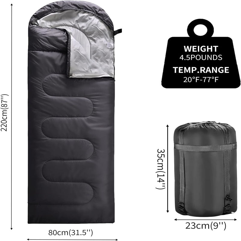 Цей комфортний вологостійкий спальний мішок підходить для 3-4 сезонів, розрахований на температуру від 5℃ до 25℃ та підходить для різних сценаріїв використання, таких як ліквідація наслідків стихійних лих, військові дії, пожертвування та допомога, проектування та державні резервні матеріали. Його гуманізований дизайн та чудові характеристики забезпечать вам комфортний та зручний сон.