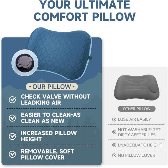 Портативна надувна подушка для екстрених випадків розроблена як конструкція 2 в 1, що дозволяє легко знімати та чистити наволочку для тривалого використання.