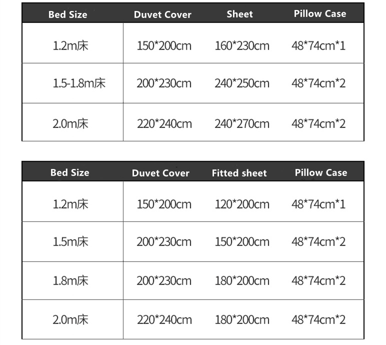 Duvet Cover (cm):150*200 / 200*230 / 220*240 |