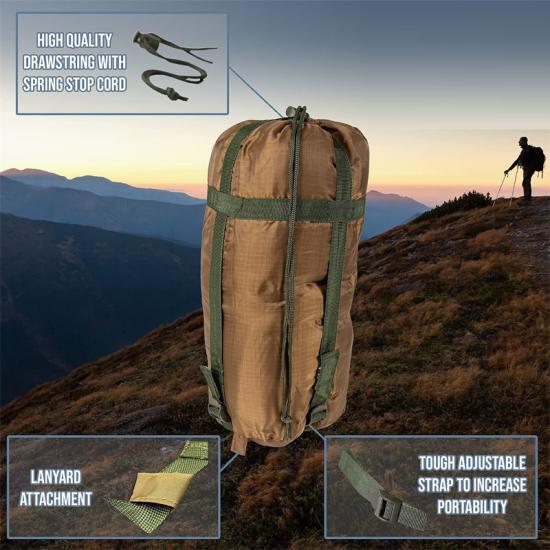 Екстрена допомога: У разі надзвичайної ситуації багатофункціональний компресійний мішок для пончо може бути використаний як тимчасове укриття, щоб забезпечити певний ступінь тепла та захисту, а також пом'якшити наслідки стихійних лих.