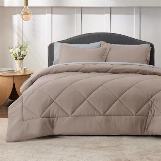 Цей комплект постільної білизни з міцних державних резервних матеріалів має унікальний двосторонній дизайн, який можна легко перевертати, щоб змінити стиль. Незалежно від того, чи це яскраві кольори, чи елегантні візерунки, його легко підібрати до стилю вашої спальні. Дизайн наволочки-конверта забезпечує стабільність та безпеку подушки, а ромбоподібний візерунок ефективно запобігає зміщенню наповнювача ковдри, забезпечуючи вам безтурботний сон.