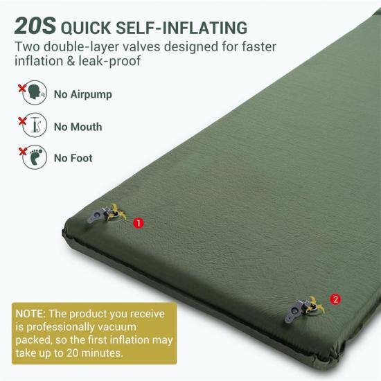 A: Для надування урядового надувного килимка для сну потрібно лише відкрити два клапани, які можна надувати