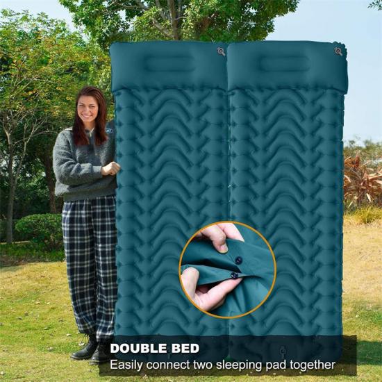 A: Надувний килимок для сну оснащений кнопками-застібками з обох боків, що дозволяє легко з'єднувати два килимки.