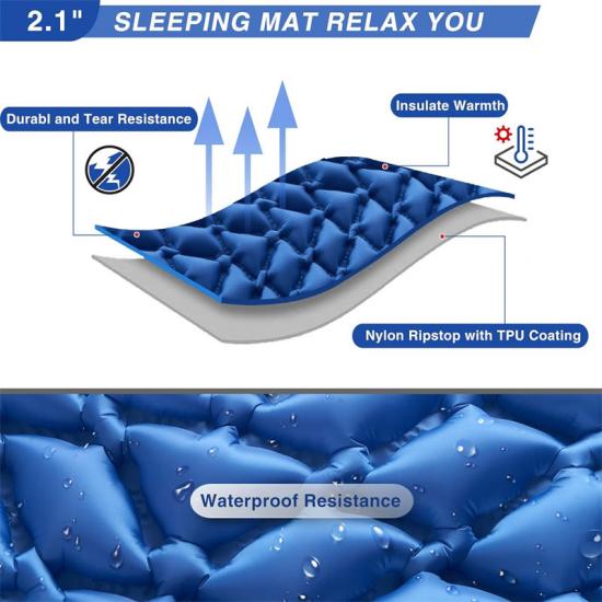 A: Цей безшумний надувний спальний килимок Організації Об'єднаних Націй є водонепроникним та виготовлений з водонепроникного матеріалу, щоб зберегти