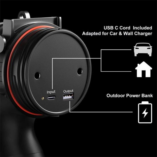 Заряджання аварійного світильника для ліквідації наслідків стихійних лих вагою 0,6 кг через порт USB-C розроблено для того, щоб зробити процес заряджання швидким і простим. Просто використовуйте зарядний пристрій для мобільного телефону та кабель USB-C, що входить до комплекту, щоб завершити процес заряджання без необхідності купувати додаткове спеціальне зарядне обладнання.
