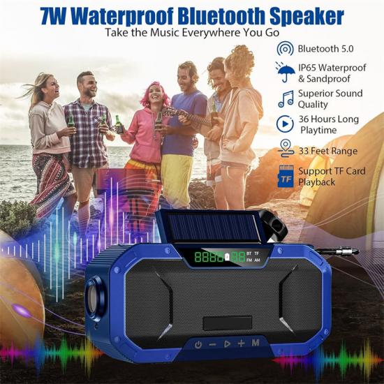 Радіоприймач Emergency Preparedness Radio із сонячною зарядкою – це не лише традиційний AM/FM-радіоприймач, це також метеорадіо NOAA. Вбудований акумулятор ємністю 5000 мАг. Цей ручний радіоприймач підтримує до 36 годин відтворення та має 3 джерела живлення. Зарядка через USB є основним джерелом живлення для щоденного використання, а в надзвичайних ситуаціях ви можете відновити достатню кількість енергії за допомогою ручного радіоприймача та сонячної енергії.