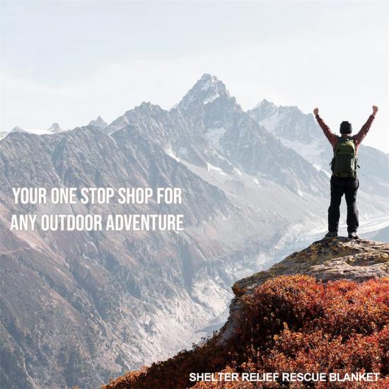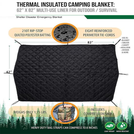 Найкращий вибір для кемпінгу в дикій природі, може використовуватися як тимчасовий намет для виживання, тент, утеплювач для гамака, подушка, роздільник для намету, екран для конфіденційності, інструмент для екстреного перенесення, засіб для ліквідації наслідків стихійних лих, приховане укриття, сумка для перенесення, спальний мішок або утеплювач для намету.