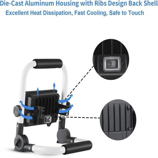 Головку лампи можна обертати на 360° по горизонталі та нахиляти на 270° по вертикалі для регулювання потрібного кута освітлення, а регульований перемикач може задовольнити потреби в освітленні різної яскравості 4000 люмен та 2000 люмен.