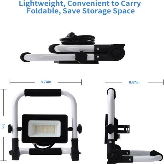 Цей аварійний світильник Червоного Хреста з яскравістю 5000 люменів має компактний дизайн розмірами 0,78*8,9*6,5 дюйма (22*22,8*16,5 см) та малу вагу 3,5 фунта (1,6 кг), що робить його особливо зручним для перенесення та розгортання.