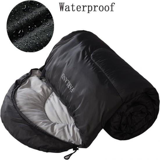 Наш м'який та теплий спальний мішок підходить для прохолодної/холодної погоди з діапазоном температур 20-62℉/-7-17℃. Спальник має водонепроникну та вітронепроникну конструкцію, яка зігріває та захищає від вологи навіть за екстремальних погодних умов. Технологія подвійного наповнення робить це можливим, і ви можете комфортно спати в спальному мішку з вітро- та дощозахисною конструкцією на блискавці. Спальник залишається теплим зверху донизу, завдяки регульованому шнурку та капюшону, який обгортається навколо голови для зігріву. Коли ви закінчите ним користуватися, ви можете легко сховати його в сумку-органайзер, що зробить його дуже зручним для зберігання та перенесення.