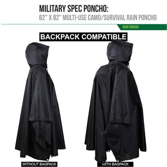 У військовій справі дощовик-пончо зі шнурком на талії також є важливим елементом спорядження. Під час польових операцій він не тільки захищає від дощу, але й забезпечує певний захист як укриття. Великий розмір дозволяє розмістити більші рюкзаки та забезпечити додатковий простір для солдатів.