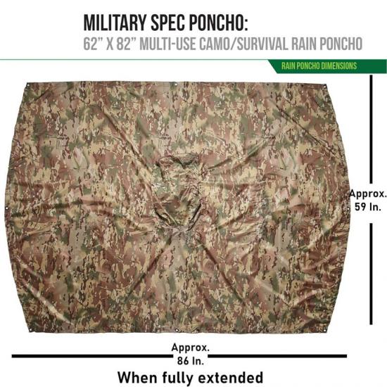 У військових операціях пончо можна використовувати як спорядження для маскування, забезпечуючи додатковий захист, одночасно зменшуючи ймовірність виявлення.