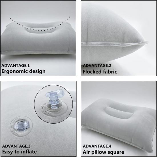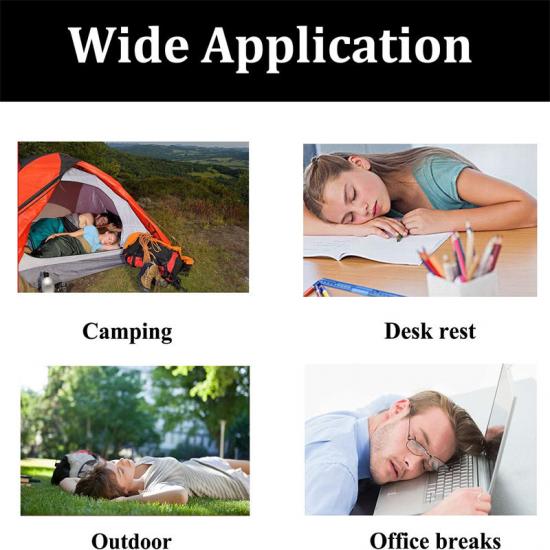 Щоб вам було легко надувати та швидко здувати подушку, ми спеціально розробили спосіб затискання або укусу за насадку. Просто подуйте кілька секунд, і ви зможете надути подушку за кілька вдихів і тримати її надутою кілька днів; щоб здувати повітря, просто затисніть насадку та натисніть нею на стіл, після чого ви зможете легко скласти подушку та покласти її в рюкзак.