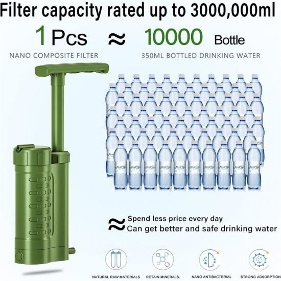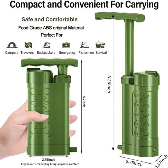 Цей очищувач води Rescue Disaster забезпечує легке натискання та плавне використання. Він забезпечує чисту та безпечну воду, що робить його ідеальним для надзвичайних ситуацій. Завдяки компактному дизайну та простоті експлуатації він забезпечує надійність та зручність. Незамінний засіб для тих, хто потребує чистої води під час стихійних лих.