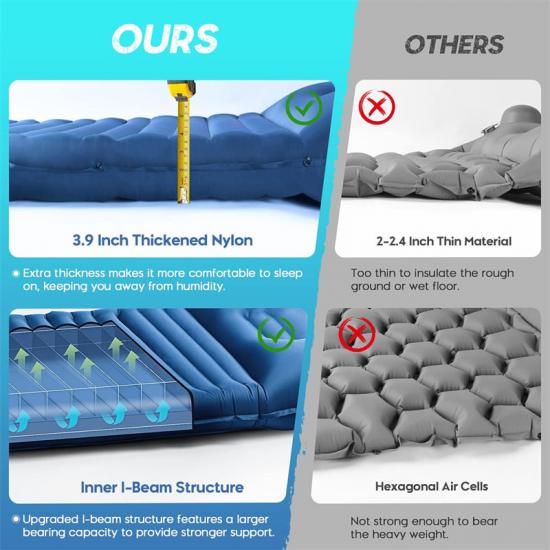 Портативний надувний килимок для сну з чудовою портативністю важить лише 1,1 кг, тому ви можете носити його з собою.