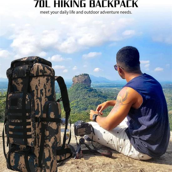 Цей рюкзак великої місткості об'ємом 70 літрів виготовлений з тканини Oxford 900D, яка не тільки водонепроникна, рвана та