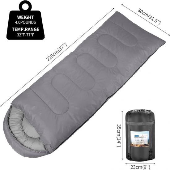 Цей спальний мішок можна використовувати гнучко, розкладаючи його на 361°, і його можна використовувати як спальний мішок, а також як ковдру чи килимок на підлогу. Поліестеровий спальний мішок, виготовлений у Китаї, місткий, холодо- та пилонепроникний, що робить його дуже практичним запасним матеріалом.
