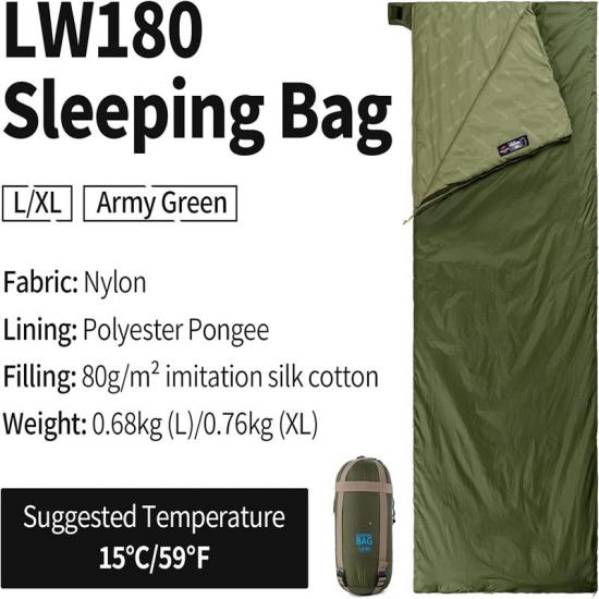 Крім того, спальний мішок постачається з сумкою для перенесення та компактною стропою для його зберігання, що полегшує його перенесення та зберігання.