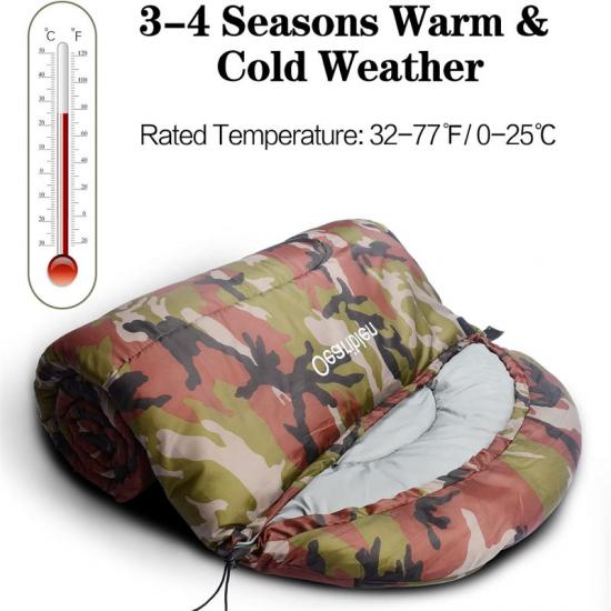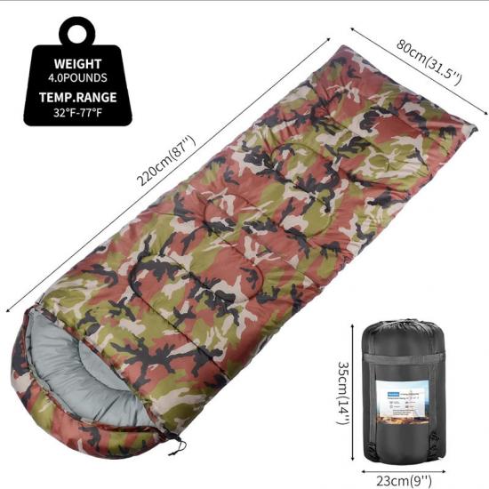 Спальний мішок з вологостійкою конструкцією має розміри 87x31,5 дюймів/220x80 см, що підходить для більшості дорослих. Такого розміру достатньо, щоб ви могли комфортно відпочивати холодними ночами. Спальник вагою всього 1,8 кг легкий та зручний для перенесення, що робить його придатним для швидкого розгортання в надзвичайних ситуаціях.