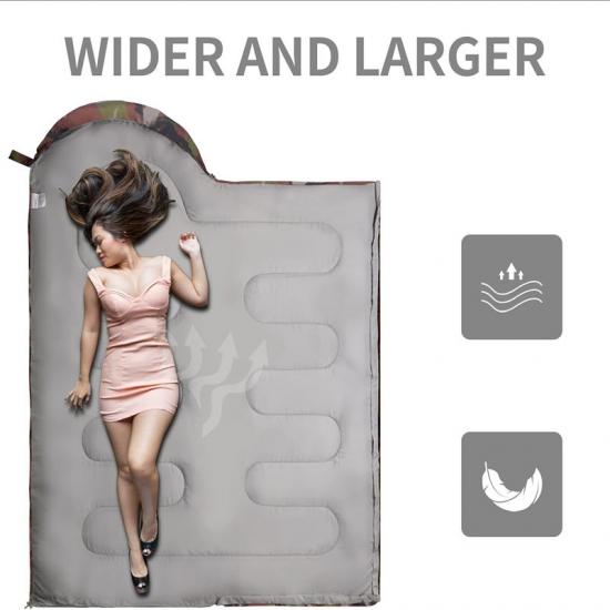 ГУМАНІЗОВАНИЙ ДИЗАЙН: Спальник розділений на штанини за допомогою блискавки, що зручно для розтягування ніг і не боїться задушливої спеки. Або застібніть його на блискавку, щоб залишатися теплим і комфортним.