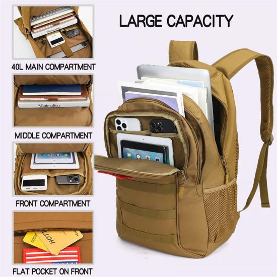 Цей рюкзак пропонує велику місткість з кількома відділеннями для організованого зберігання речей. Він розроблений у тактичному стилі та має низьку ціну, що робить його доступним варіантом для тих, кому потрібен рюкзак великої місткості.