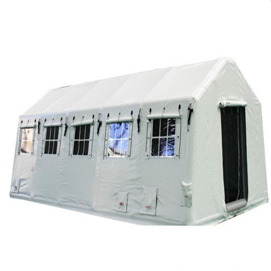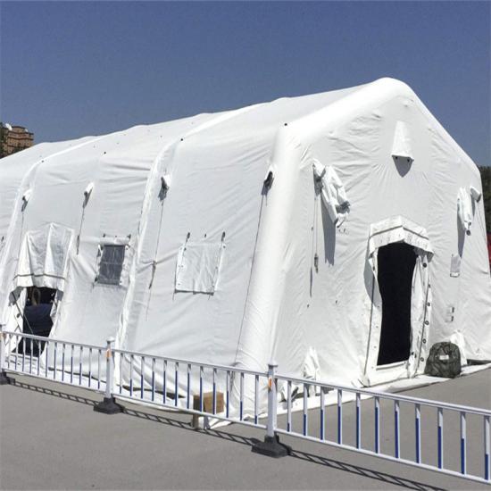 Професійний надувний намет для тимчасового медичного пункту, стандартного білого медичного дизайну, що відповідає колірним специфікаціям медичних закладів Міжнародної організації охорони здоров'я. Завдяки системі швидкого розгортання однією клавішею, одна людина може виконати базове встановлення протягом 3 хвилин. Розміри від 10 до 60 кв.м, підходить для польових рятувальних робіт, епідемічного скринінгу, медичних візитів громади та інших сценаріїв. Матеріал - медична тканина 420D Oxford, водонепроникна та повітропроникна, антибактеріальна та проти цвілі, може використовуватися безперервно протягом 30 днів без заміни. Внутрішній дизайн відповідає стандартам тимчасових медичних приміщень, перевірено на понад 1200 медичних пунктах по всьому світу.