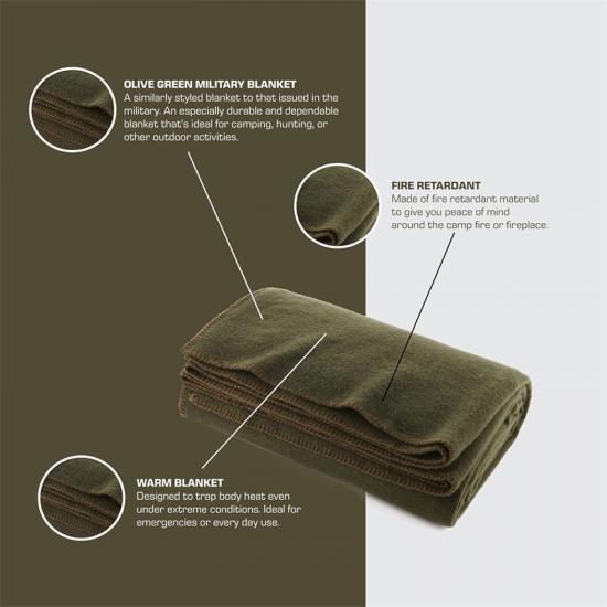 НАДЗВИЧАЙНА ЛІКВІДАЦІЯ ПІД ЧАС ЛИХА: Наша оливково-зелена вовняна ковдра розміром 66" x 90" може відігравати важливу роль у ліквідації наслідків стихійних лих, незалежно від того, чи йдеться про масштабне чи незначне лихо. Вона не тільки забезпечує тепло, але й може використовуватися як тимчасовий намет для захисту людей від вітру та дощу.