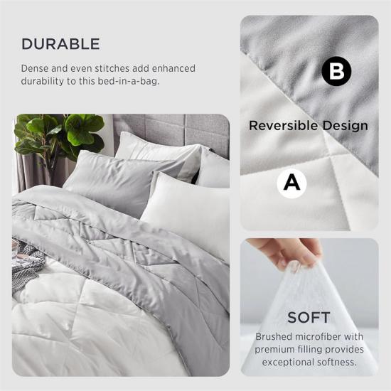 A: Міцні комплекти постільної білизни «Сприяння ООН» вирізняються м’яким, теплим, двостороннім дизайном та легким доглядом. Стьобаний дизайн додає об’єму та довговічності, а наволочки у формі конверта забезпечують безпеку подушок.