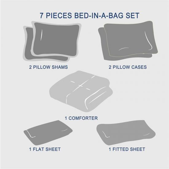 A: Постільна білизна з поліестеру, додана Організацією Об'єднаних Націй, включає 1 ковдру 230x260 см, 2 наволочки 50x90 см, 1 простирадло 270x260 см, 1 простирадло на резинці 200x200+35 см та 2 наволочки 50x100 см.