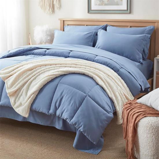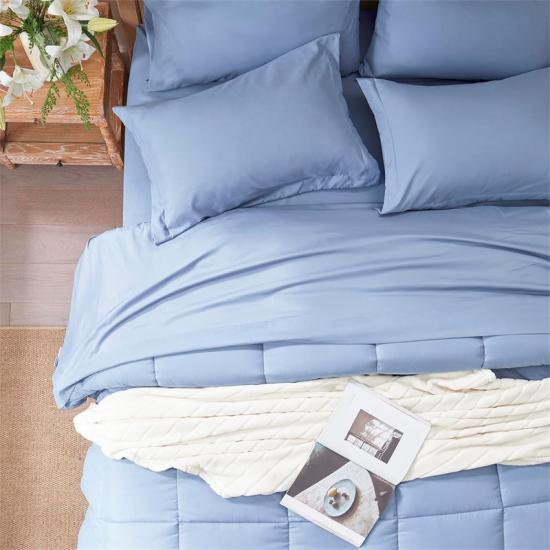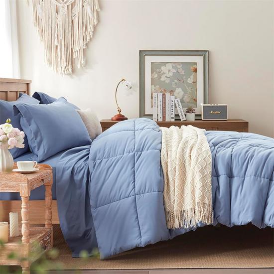 Цей всесезонний комплект постільної білизни від United Nations Donate Emergency Supplies виготовлений з високоякісного пухового альтернативного наповнювача щільністю 270 г/м² для забезпечення комфорту та м’якості. Класичний квадратний дизайн стьобання ефективно запобігає зміщенню та збиванню наповнювача. Навіть після багаторазового прання він зберігає свою початкову текстуру без катишок. Легкий дизайн забезпечує правильну температуру як у спекотні, так і в холодні ночі, дозволяючи вам насолоджуватися комфортним сном у будь-яку пору року.