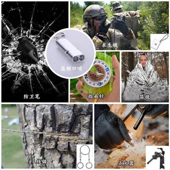 Оптові державні установи 18 в 1 аварійних наборів для виживання, аптечки першої допомоги, комплекту для пожежної евакуаціїДалі :
